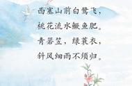 31。張志和《漁歌子》:西塞山前白鷺飛,桃花流水鱖魚肥。